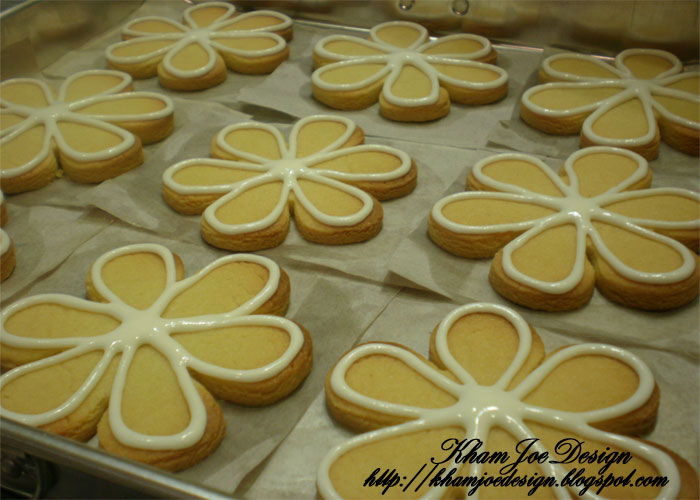 Cookies yang telah siap dibake..disejukkan ke suhu bilik...sementara menunggu selesai baking semua cookies, saya siapkan royal icing....